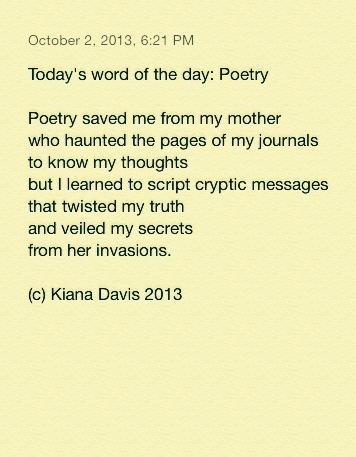 I love this…I got into poetry for much the same reason. I have too many secrets for a journal and I am to paranoid to trust so I write my autobiography in poetry within which I hide little markers only I can decode.